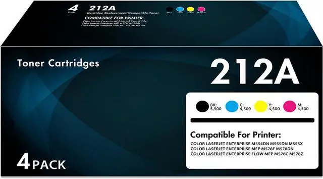 Include: 4-Pack FIREINK Compatible Toner Cartridges for 212A W2120A W2121A W2122A W2123A (K/C/M/Y)