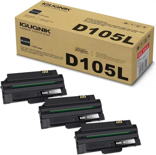 Replacement for Samsung Included: 3 Pack High Yield MLT-D105L Black Toner cartridge