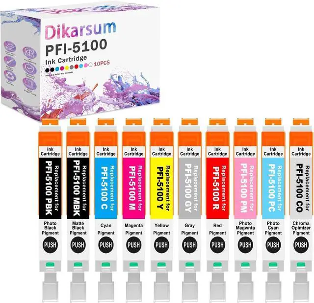 Package includes: 10-Pack PFI-5100 Ink Cartridge(Matte Black,Photo Black,Cyan,Magenta,Yellow,Gray,Photo Cyan,Photo Magenta,,Red,Chroma Optimizer