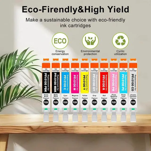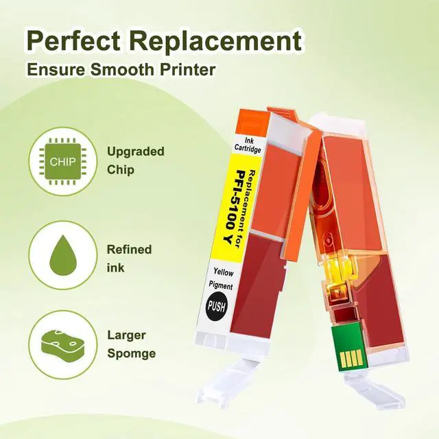 This high-yield PFI-5100 ink cartridge uses the latest chip technology and high-quality ink, with an anti clogging nozzle design and easy installation