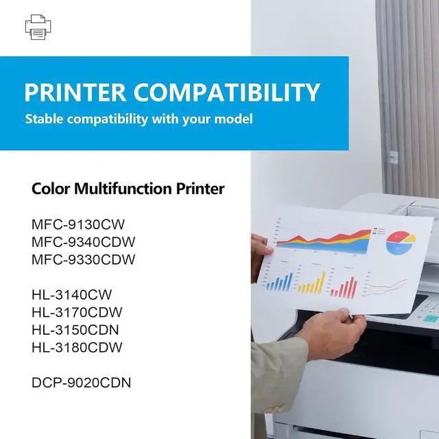 • Compatible PrintersReplacment for brother mfc-9130cw toner cartridges for brother hl-3170cdw toner cartridges for brother HL-3140CW, HL-3150CDN, HL-3170CDW, HL-3180CDW, MFC-9130CW, MFC-9330CDW, MFC-9340CDW, DCP-9020CDN