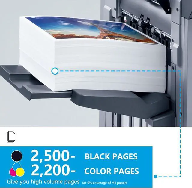 • High page yield: 2500 pages per black toner cartridge and 2200 pages per color toner cartridge (based on 5% coverage)