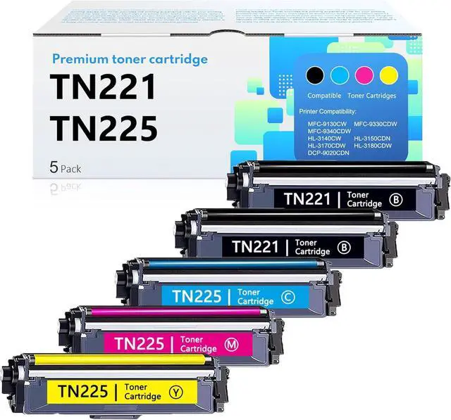 • Includes: You will receive 5-Pack toner cartridges, 2 x TN221 Black, 1 x TN225 Cyan, 1 x TN225 Magenta, 1 x TN225 Yellow