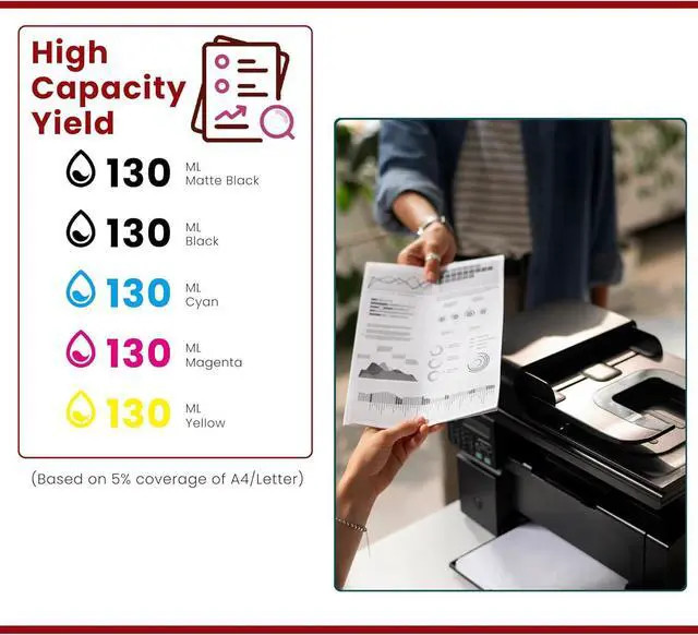 High Capacity Yield Pages - ImagePROGRAF iPF780 ink cartridge up to 130ml for each color, based on 5% coverage of A4/Letter