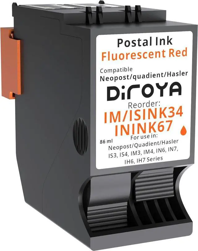 Print throughput: with the ISINK34 fluorescent red ink cartridge can support up to 21,800 impressions, Whether you are using a Quadient, Neopost or Hasler IS-300, IS-400, IN-600, IN-700 Series Franking Machine, the ISINK3, ISINK4 ink cartridge will help you lower your cost per print.