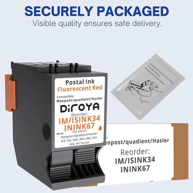 Compatibility: The ISINK34 ink cartridge is a high-yield replacement ink cartridge for use with Quadient Neopost Hasler IS300, IS330, IM480, IM460, IN600, IN700 Series postage franking machines.