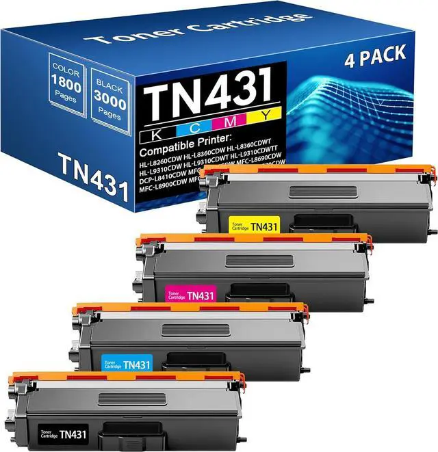 Package Contents: 1 x Black TN431BK Toner, 1 x Cyan TN431C Toner, 1 x Magenta TN431M Toner, 1 x Yellow TN431Y Toner (4 Pack )