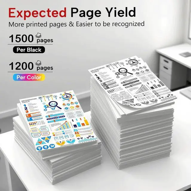 High Page Yield: 1,500 pages per Black & 1,200 pages per Cyan/Yellow/Magenta Toner Cartridge (Letter A4, at 5% coverage)