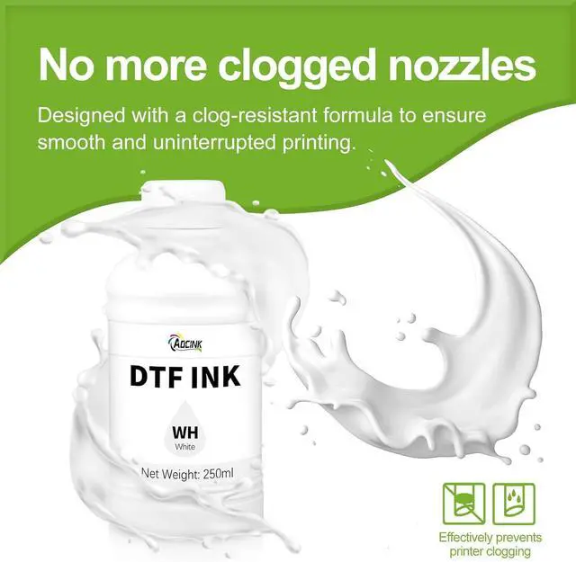 Clog-Free Ink for DIY Gifts: Our premium DTF ink prevents clogs with high fluidityjust shake the white ink daily. Perfect for vibrant prints on cotton, polyester, and more. Create unique gifts for Christmas, Valentines, and beyond