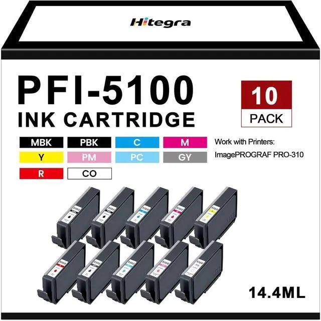 PFI-5100 Ink for Hitegra - PRO310 ink cartridge can automatically recognize the printer, and press determine key according to the reminder after connecting the printer. Compatible cartridge can provide printing for clear and natural print result