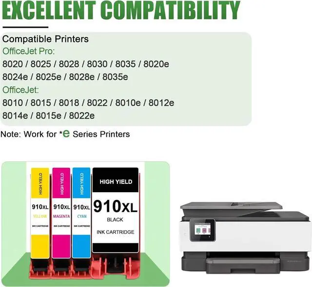 For 910XL Ink Cartridges Combo Pack Compatible Printers: 8010 8015 8018 8022 8020 8025 8028 8030 8035 8012e 8014e 8015e 8022e 8020e 8024e 8025e 8028e 8035e Printers