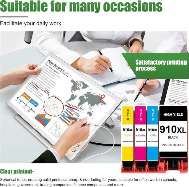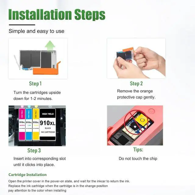 With built-in smart chips, the 910XL ink cartridge combo pack ensures strong compatibility, fast recognition, and real-time ink level monitoring, providing you with a smooth and efficient printing experience