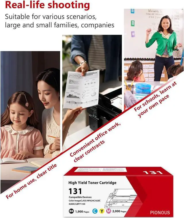 High Page Yield: 1,900 pages for 131/CRG131/131H black toner and 2,000 pages for cartridge 131 cyan yellow magenta color toner at 5% coverage (Letter/A4), office learning more relaxed