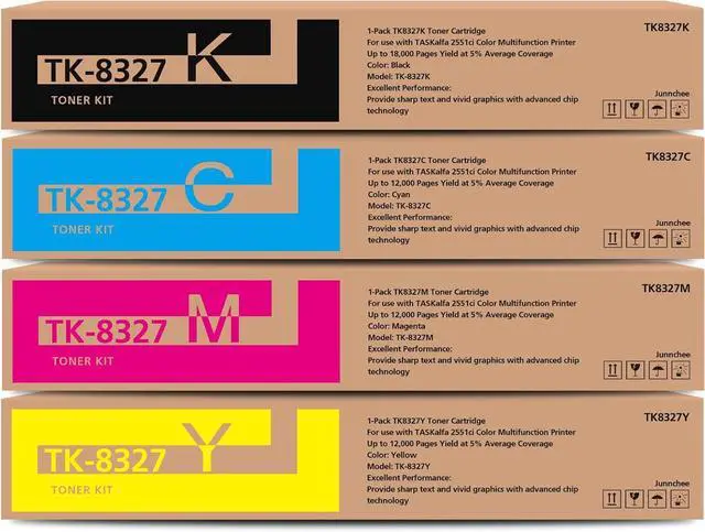 Include: 4-Pack TK8327 TK-8327 Black Cyan Magenta Yellow Toner Cartridges