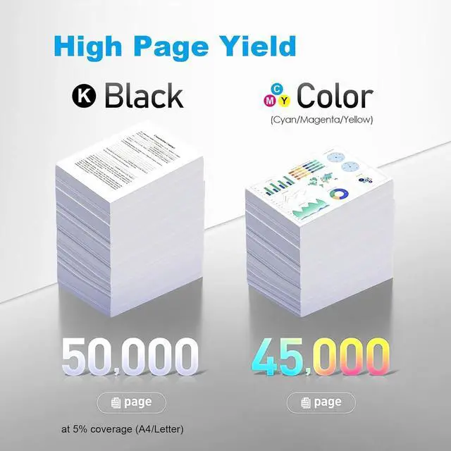 Page Yield: Up to 50,000 pages per black and 45,000 pages per color W9170MC toner cartridges at 5% coverage (Letter A4).