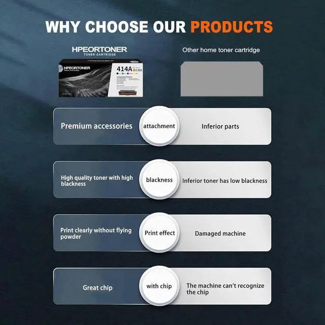 Print Quality: Engineered with advanced technology ours 414A / W2021A W2022A W2023A toner cartridge delivers sharp text and crisp graphics, maintaining the professional appearance of your documents with exceptional print quality.