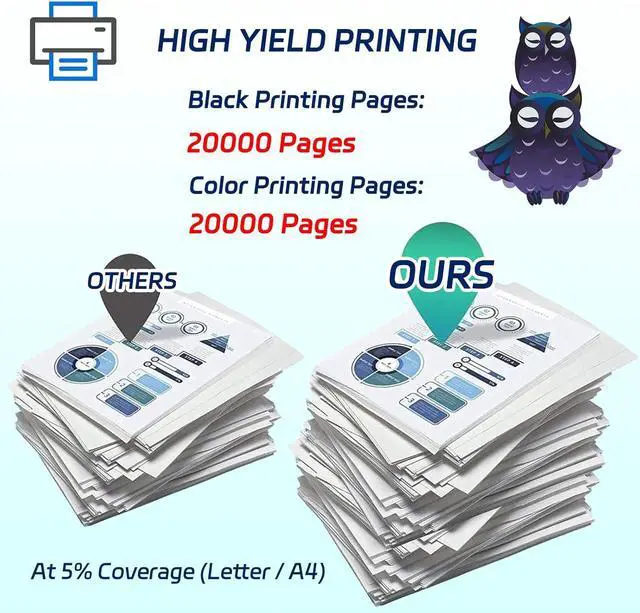 High print volume, efficient office: Our Drum Unit are designed for high print volume, reducing the frequency of replacement, and greatly improving office efficiency. Whether it is large-scale document printing or daily office needs, our Drum Unit can do the job. Black(BK/K) print pages: 20000 pages. Color print pages: 20000 pages. (5% coverage on A4 paper)