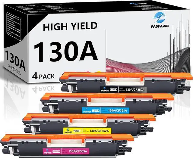 Package Contents:130A Toner Cartridges 4 Pack, 1x Black (CF350A), 1x Cyan (CF351A), 1 x Magenta (CF353A), 1 x Yellow (CF352A)