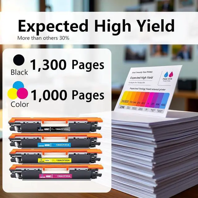 High Page Yield: Up to 1,300 pages per 130A Black Toner Cartridge & 1,000 pages per 130A Color Toner Cartridge (Letter/A4, at 5% coverage)