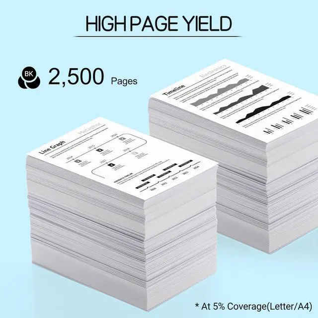 One black cartridge can print up to 2500 pages for A4 papers at 5% coverage.