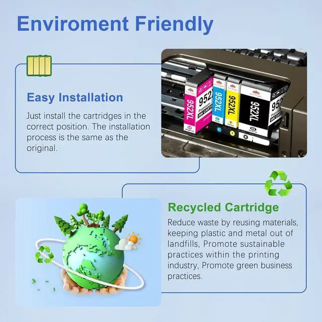 Enviroment Friendly and Easy Installation: We sources the highest of quality remanufactured 952 xl printer ink cartridges, No need to tear the seal, it can be replaced and used immediately