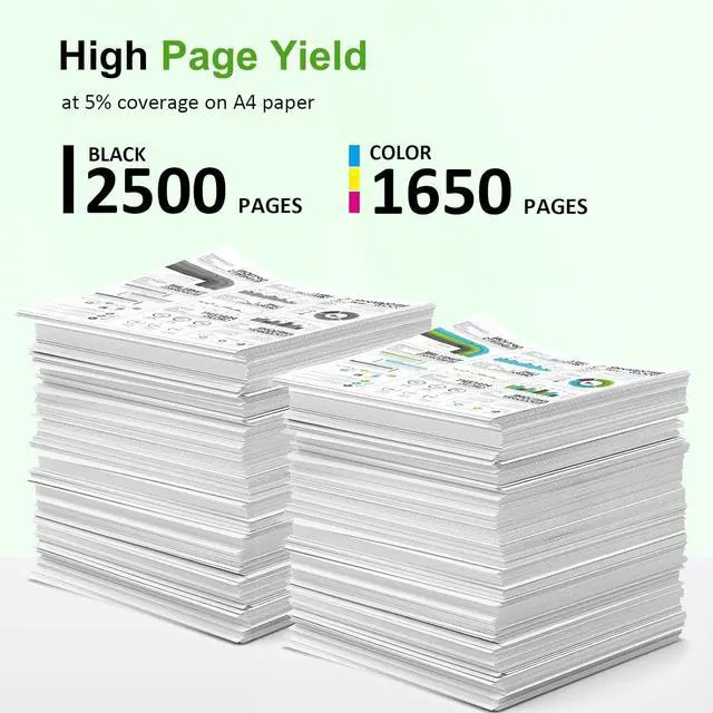 High Page Yield: It yields up to 2,500 pages for each 936XL Black Ink and 1,650 pages for each 936XL Color Ink at 5% coverage (A4e letter)