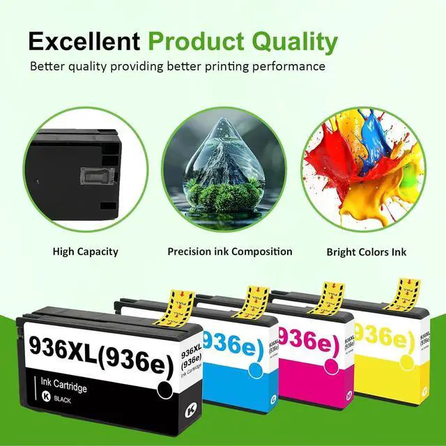 Package Content: Ink 936XL black and 936XL color combo pack (1 × 936XL Black, 1 × 936XL Cyan, 1 × 936XL Magenta, 1 × 936XL Yellow Ink Cartridge