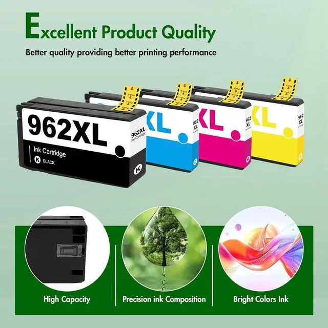 • Package Content: Ink 962XL black and 962 color combo pack (1 × 962XL Black, 1 × 962XL Cyan, 1 × 962XL Magenta, 1 × 962XL Yellow Ink Cartridge