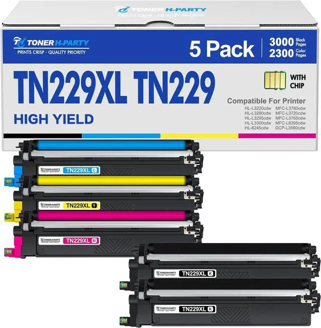 Color: TN 229XL TN-229XL Toner Cartridges 5 PACK (2 x TN229XLBK black toner, 1 x TN229XLC cyan toner, 1 x TN229XLY yellow toner, 1 x TN229XLM magenta toner)