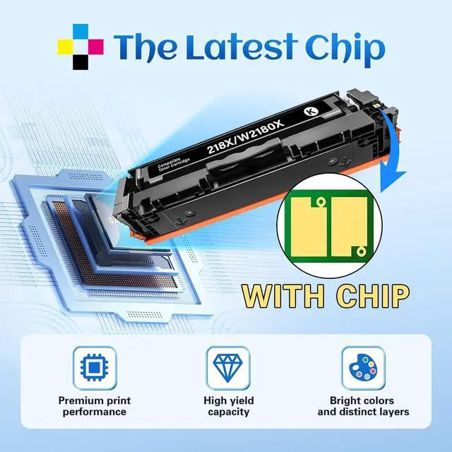 1.With chip: This 218X 218A toner cartridge contains chip design, no complicated operation is required during installation, plug and play, suitable for HP Color Laserjet Pro MFP 3201dw 3301fdw 3301cdw 3301sdw Laser printer