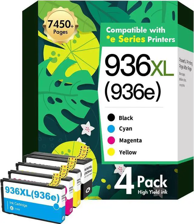 Package Content: Ink 936XL black and 936XL color combo pack (1 × 936XL Black, 1 × 936XL Cyan, 1 × 936XL Magenta, 1 × 936XL Yellow Ink Cartridge