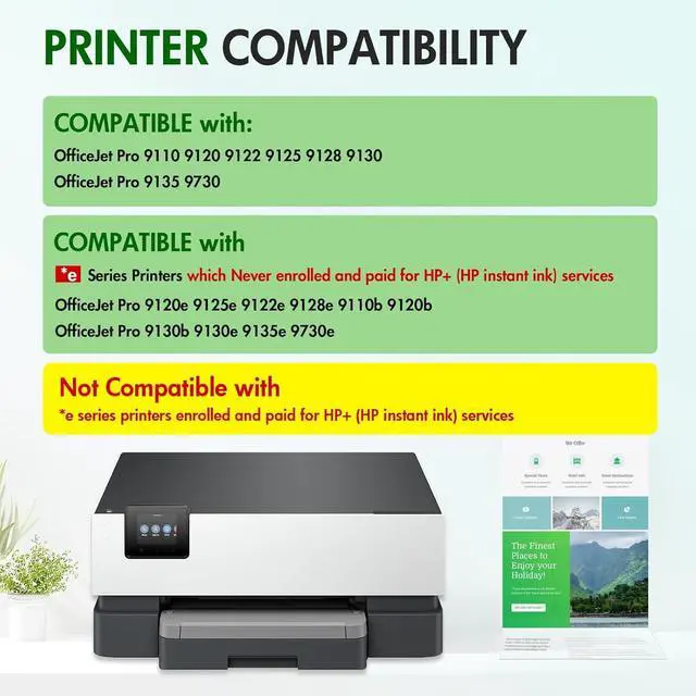 Compatible Printers: *e series printers which Never enrolled and paid for HP instant ink services, such as OfficeJet Pro 9120e 9125e 9122e 9128e 9110b 9120b 9130b 9130e 9135e 9730e Series Printer