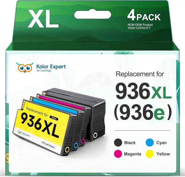 Package Included: 4 pack Kolor Expert 936XL 936e Ink Cartridges replacements1Black,1 Cyan,1 Magenta,1 Yellow)