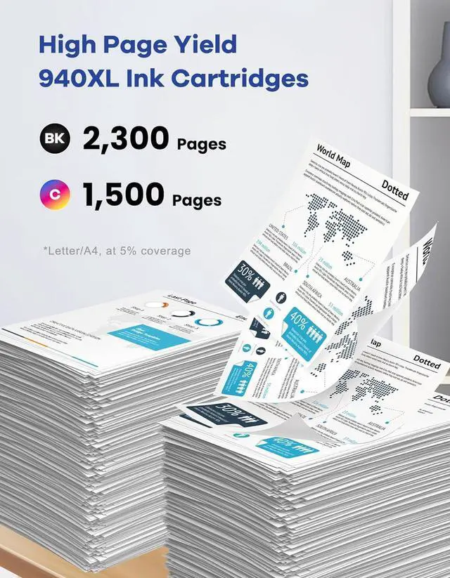 Exceptional Page Yield: 2,300 Pages per 940 XL Black Ink Cartridges; 1,500 Pages per 940 XL Cyan, Magenta, Yellow Ink Cartridges