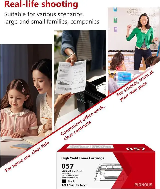 High Page Yield: 3,200 pages for 057/057H/CRG-057 black toner at 5% coverage (Letter/A4), office learning more relaxed