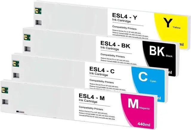 esl4 inkCompatible with roland: SolJet Pro 4 XF-640, XR-640, Roland VersaCAMM VS-300i, VS-540i, VS-640i, VersaEXPRESS RF-640, VersaStudio BN-20A;
