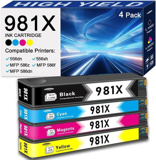 Package Contents: 4 Pack 981X Ink Cartridges (Total 4 Pack 1Black / 1Cyan / 1Magenta / 1Yellow)