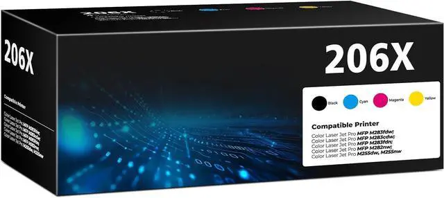 Compatible for Printer: 206X Toner Cartridges are works perfectly compatible with HP Color Laser jet Pro MFP M283fdw toner cartridges, MFP M283cdw toner cartridges, M283fdn toner cartridges, M282nw toner cartridges, Color Pro M255dw toner cartridges, M255nw toner cartridges.