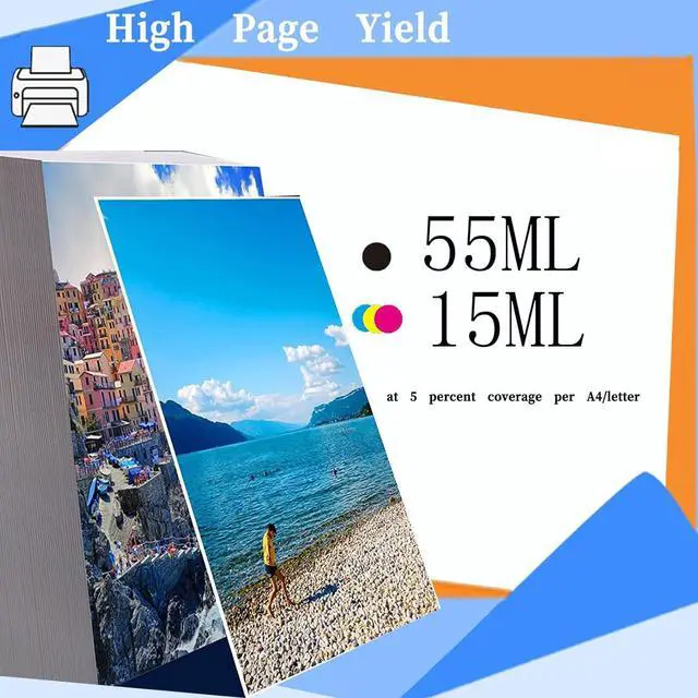 High Yield: Up to 55ML Black ink cartridge &color 15ML per color ink cartridge (based on 5% coverage)