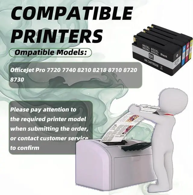 Compatible With Printers:955XL Ink Cartridge Compatible for HP OfficeJet Pro 7720 7740 8210 8216 8702 8710 8715 8720 8725 8730 8740 Inkjet Printers