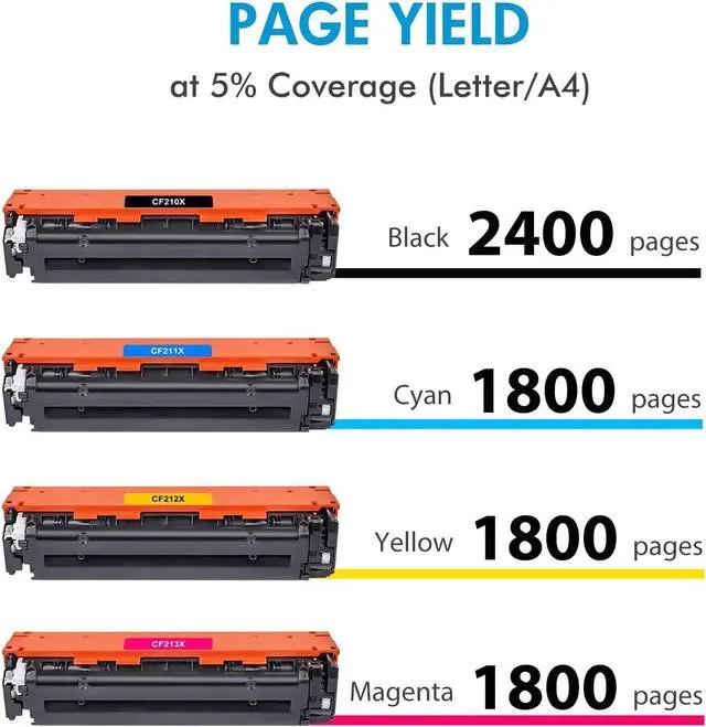 Page Yield: 2,400 Pages (Black) and 1,800 Pages (Color) Based on 5% coverage (Letter/A4)