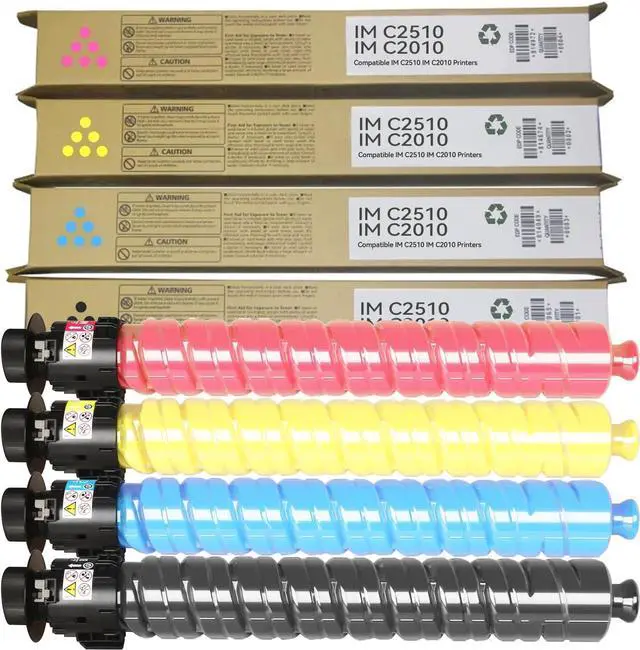 Package includes: Complete 4-Pack IMC2510 / IMC2010 Toner Set (Black Cyan Magenta Yellow) for IM C2510 Toner Cartridge,IM C2010 Toner Cartridge