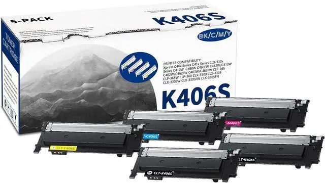 Package Contents: 5 Pack K406S Toner Cartridge. (2Black+1Cyan+1Magenta+1Yellow)