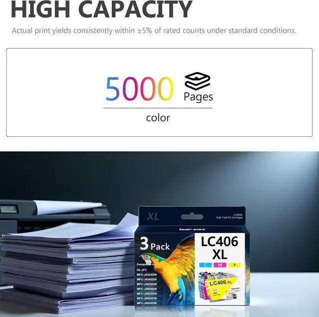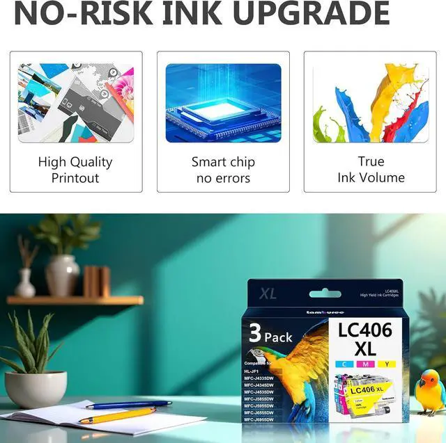 Includes: 3 Pack for LC406XL ink cartridges(1 x Cyan, 1 x Magenta, 1 x Yellow) for printers to perfect balance of efficiency & cost control