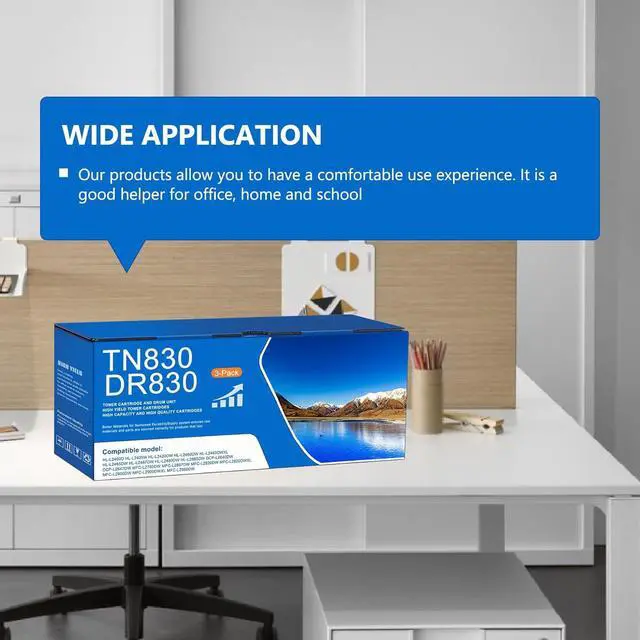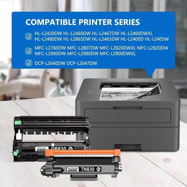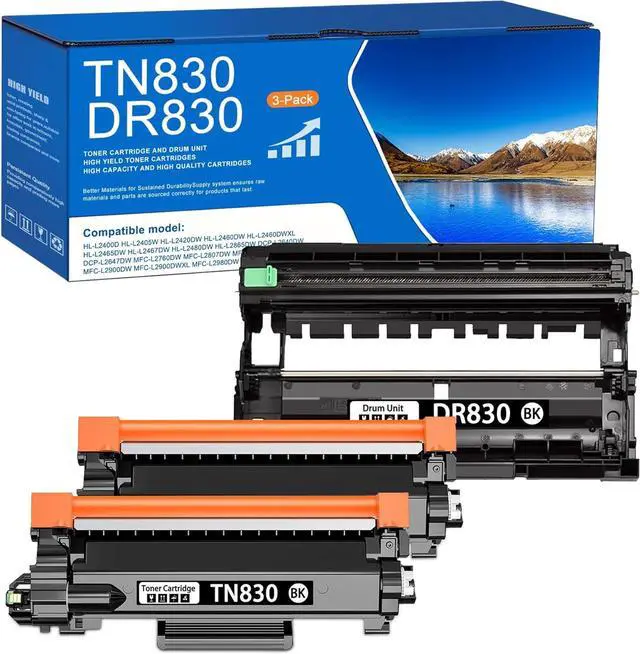 Excellent quality: Our TN830 Toner and DR830 drum unit deliver fine grain, clear printing, high blackness value, firm fixing and no ghosting, giving you vivid and natural prints