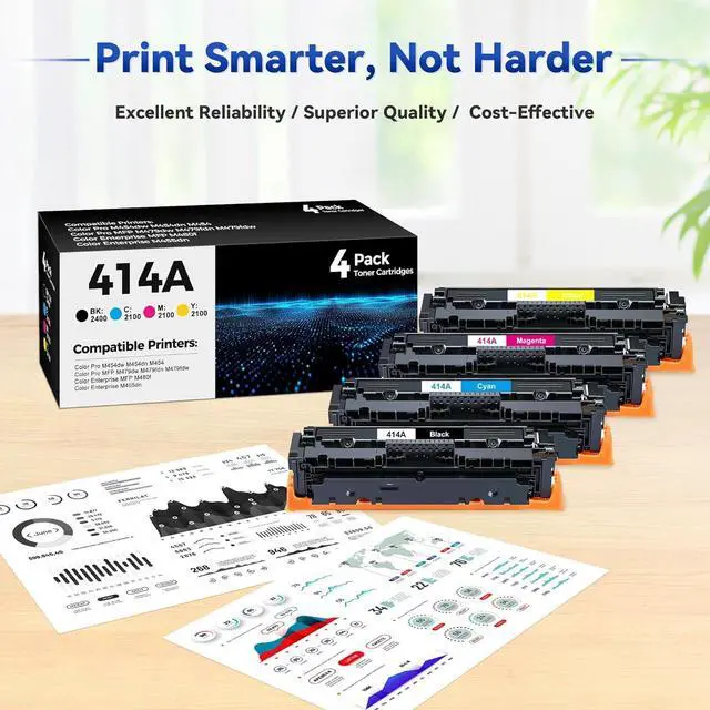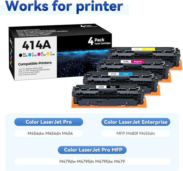 [Page Yield] up to 2,400 pages for 414A black toner and up to 2,100 pages for per 414A Color toner (based on 5% coverage of A4 paper)