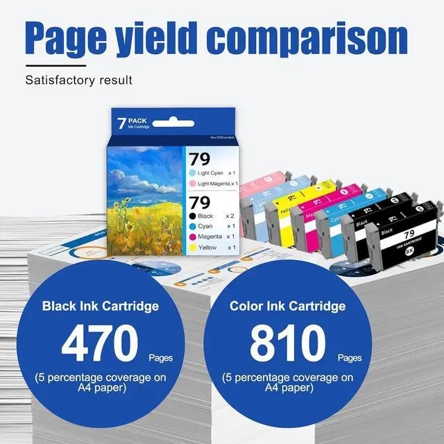High page yield: 470 pages per 79 Black ink cartridge; 810 pages per 79 color ink cartridge (Cyan/Magenta/Yellow/Light Cyan/Light Magenta)
