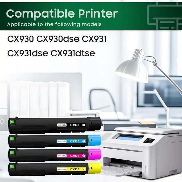 High Page Yield: CX930 Black Toner Cartridge can print 28,000 pages,and each CX930 color Toner Cartridge can print 16,500 pages.Minimize the hassle of frequently changing toner cartridges
