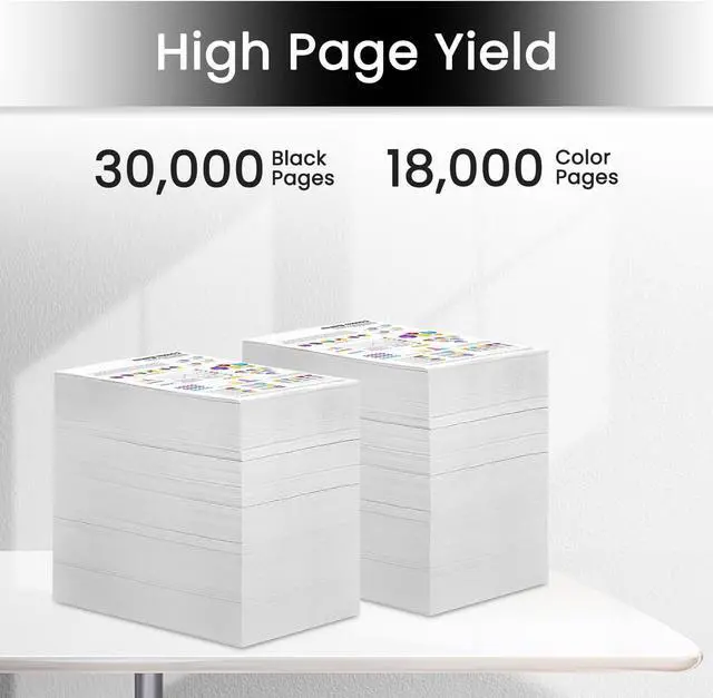 High Page Yield: Up to 30,000 pages per MPC3503 black toner cartridge, up to 18,000 pages per MPC3503 color toner cartridge at 5% coverage of A4 paper