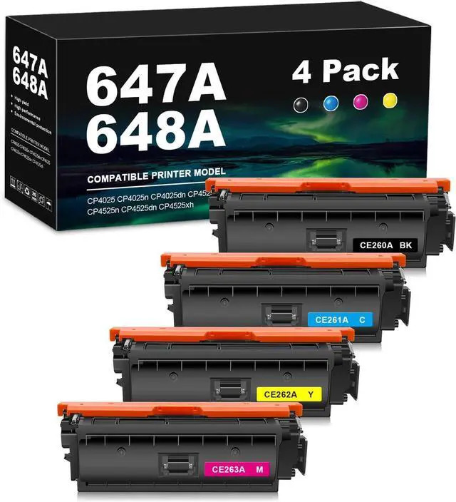 • Package Contents: 4 Pack (1BK+1C+1M+1Y) 647A648A Toner Cartridges.